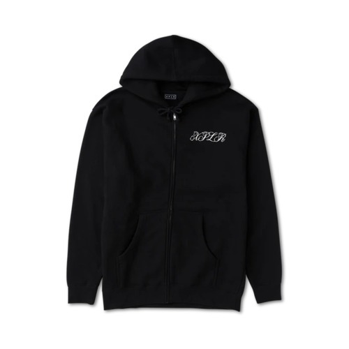Floral Note Zip Up Black Hoodie